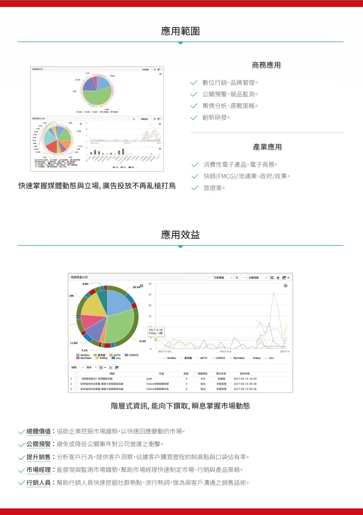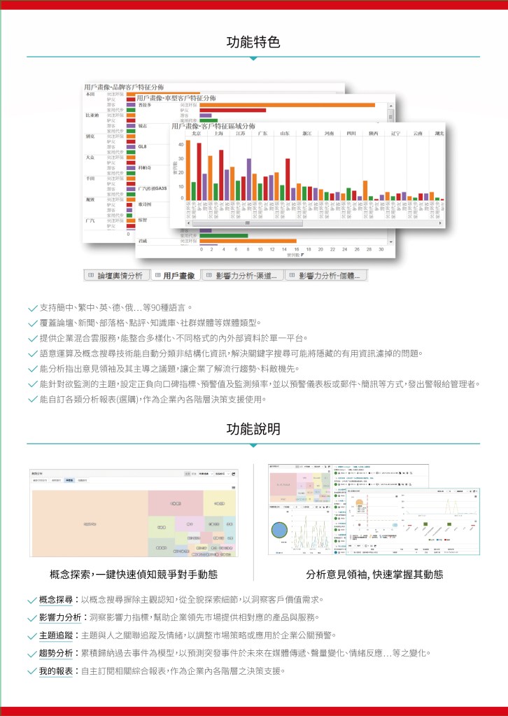 社群媒體時代變動快速,如何在茫茫網海中,以更有效率的方式挖掘客戶關心的議題? 想要即時洞悉時事、精準掌握閱聽眾喜好,透過分析大數據和文字探勘的方式,協助業主快速蒐整網路輿情。